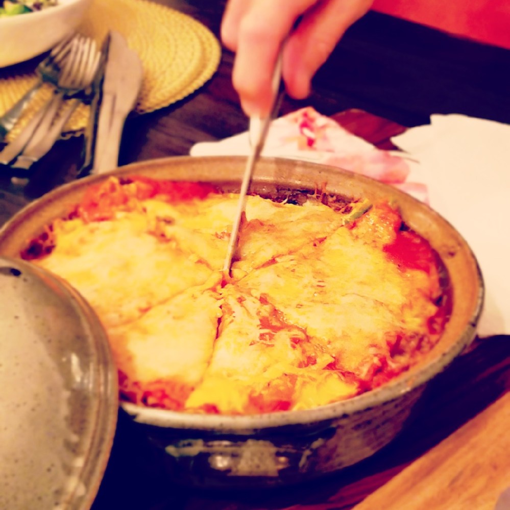 There’s an obvious autumnal feel in the layers of veggies and herbed goat cheese, yet the recipe preserves the simplicity of a traditional lasagna with a marinara variation and ricotta blend.